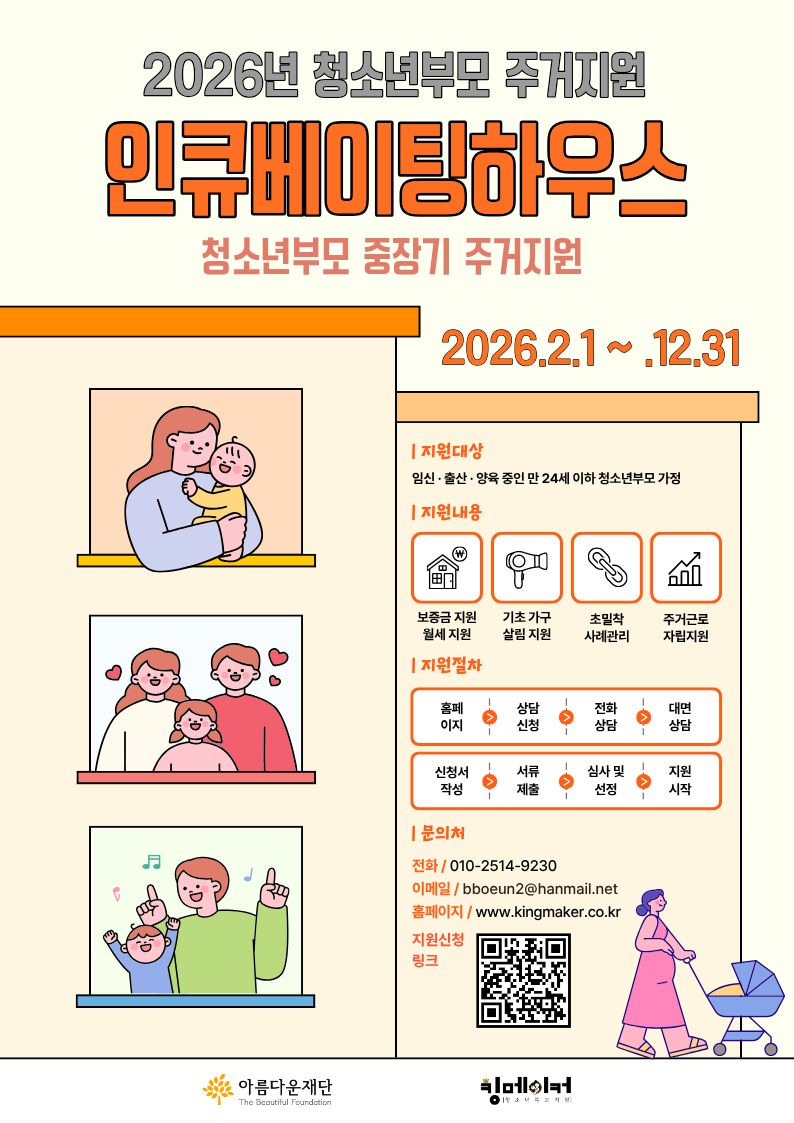 ※  본 사업은 아름다운재단 지원을 통해 청소년부모지원 킹메이커와의 협력사업으로 진행됩니다.